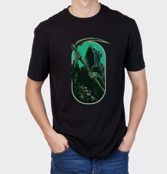 Men's Graphic Printed Premium Cotton Biowash Half Sleeves T-Shirt - Devil with Axe Graphic
