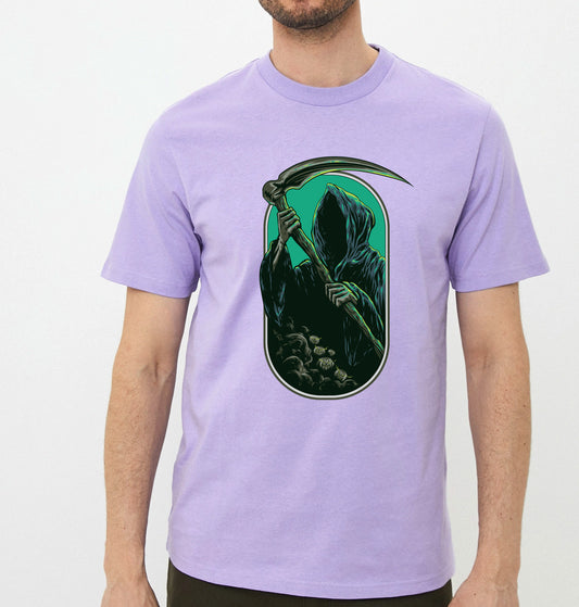 Men's Graphic Printed Premium Cotton Biowash Lavender Color T-Shirt - Devil with Axe Graphic Unisex Tee