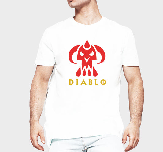 Men's Graphic Printed Premium Cotton Biowash T-Shirt - Diablo Game Skull Graphic Unisex Tee