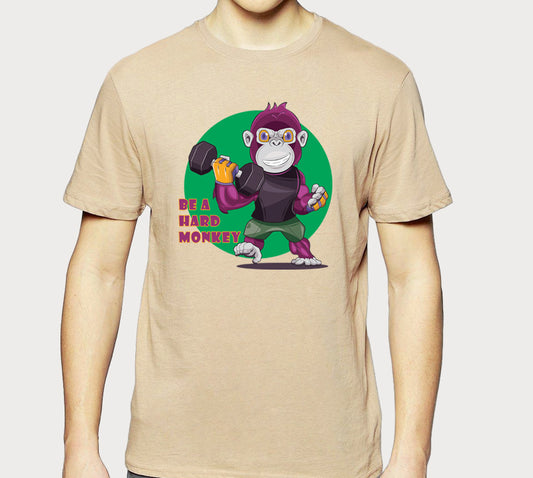 Men's Graphic Printed Premium Cotton Biowash Beige Color T-Shirt - Be a Hard Monkey Graphic Unisex Tee