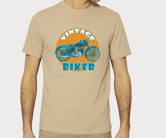 Men's Graphic Printed Premium Cotton Biowash Beige Color T-Shirt - Vintage Biker Graphic Unisex Tee