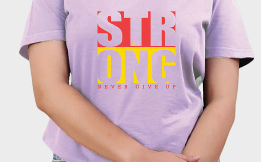 Women's Typography Premium Cotton Biowash Lavender Color T-Shirt - - Be Strong Never Give Up Typography Unisex Tee