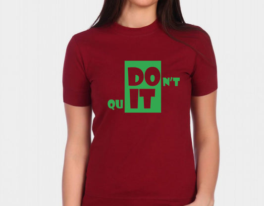 Women's Graphic Printed Premium Cotton Biowash T-Shirt Maroon and Black Color - Dont Quit Graphic Unisex Tee