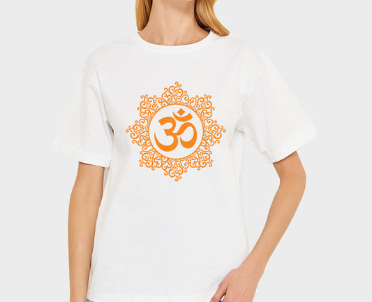 Women's Graphic Printed Premium Cotton Biowash T-Shirt - OM Graphic Spiritual Tee