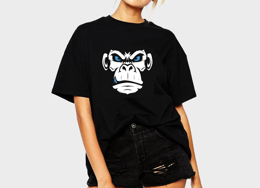 Women's Oversized Black Graphic Printed Premium Cotton Biowash Half Sleeves T-Shirt - Raging Gorilla Face Graphic Unisex Tee