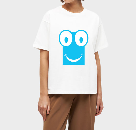 Women's Oversized Graphic Printed Premium Cotton Biowash T-Shirt - Cute Wide-Eyed Smiley face Graphic Unisex Tee