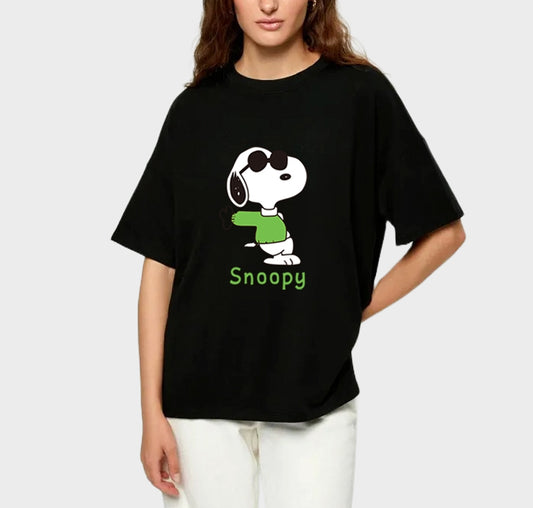 Women's Oversized Graphic Printed Premium Cotton Biowash Half Sleeves T-Shirt - Cool Snoopy Standing Graphic Unisex Tee