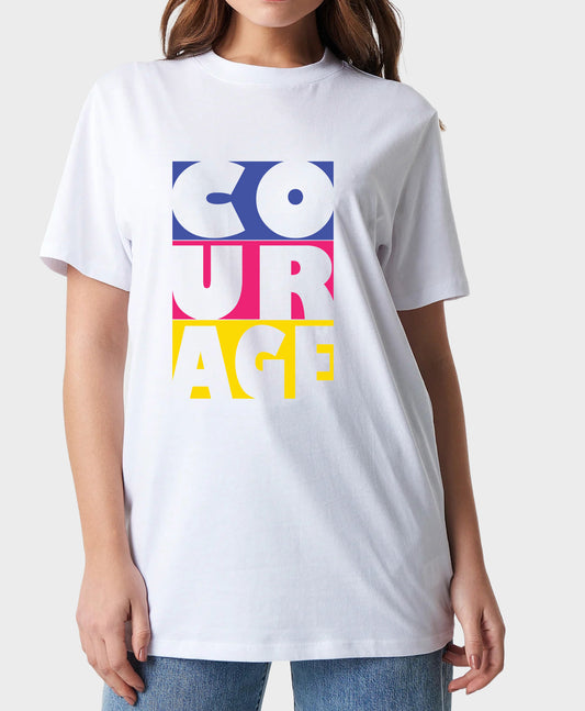 Women's Oversized Graphic Printed Premium Cotton Biowash T-Shirt - Courage Typography Unisex Tee