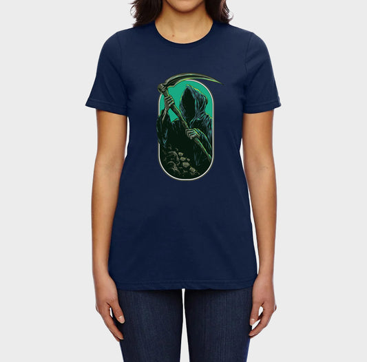 Women's Graphic Printed Premium Navy Blue Cotton Biowash T-Shirt - Devil with Axe Graphic Unisex Tee