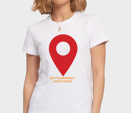 Women's Graphic Printed Premium Cotton White Color T-Shirt - My current Location Graphic Unisex Tee
