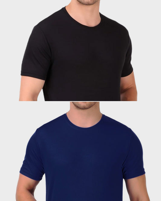 Men's Gym and Sports Plain Black and Navy Blue Color T-Shirts Combo - Pack of 2 T-Shirts