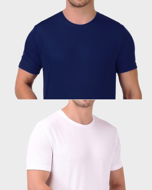 Men's Gym and Sports Plain White and Navy Blue Color T-Shirts Combo - Pack of 2 T-Shirts