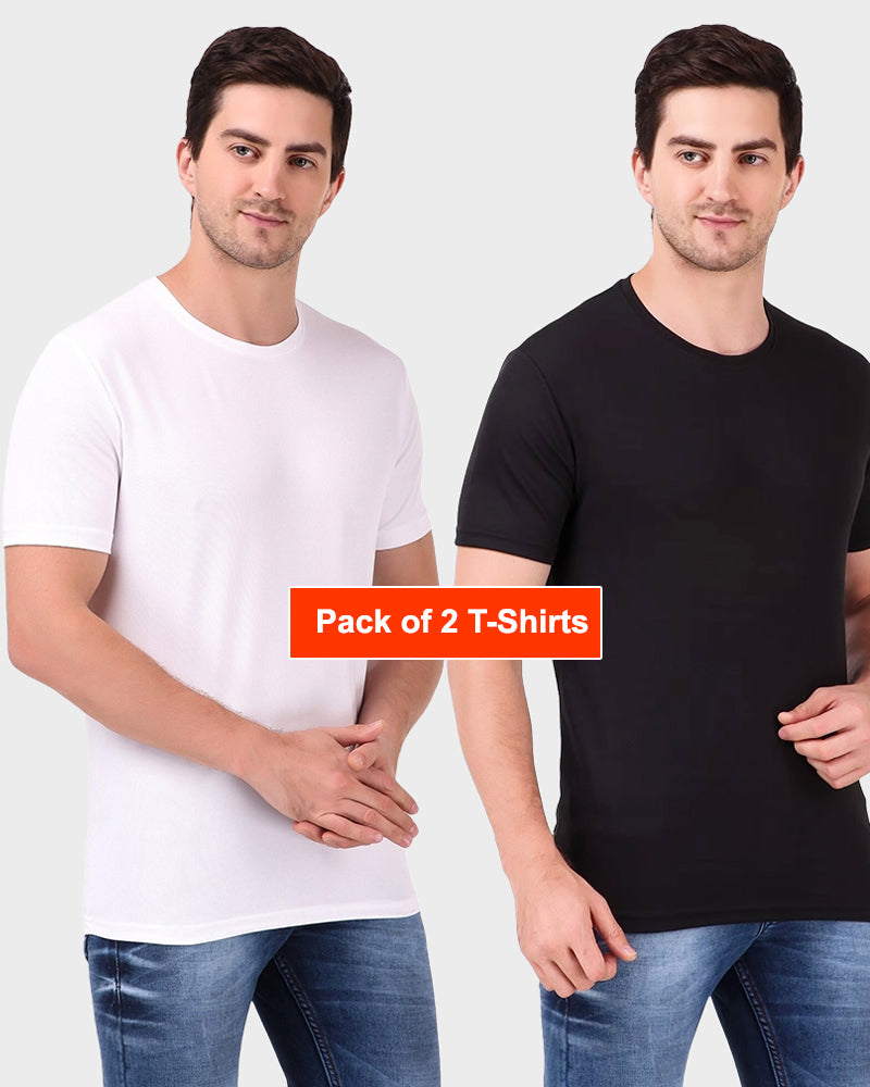 Men's Gym and Sports Plain White and Black Color T-Shirts Combo - Pack of 2 T-Shirts