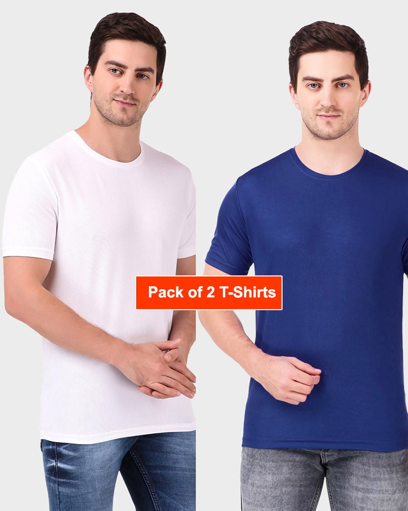Men's Gym and Sports Plain White and Navy Blue Color T-Shirts Combo - Pack of 2 T-Shirts