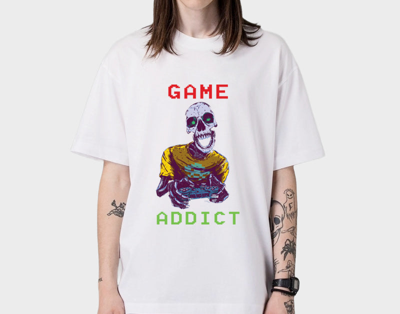Gaming Enthusiast's Dream: Embrace your love for gaming with our eye-catching "Game Addict" t-shirt, designed to resonate with fellow gamers.