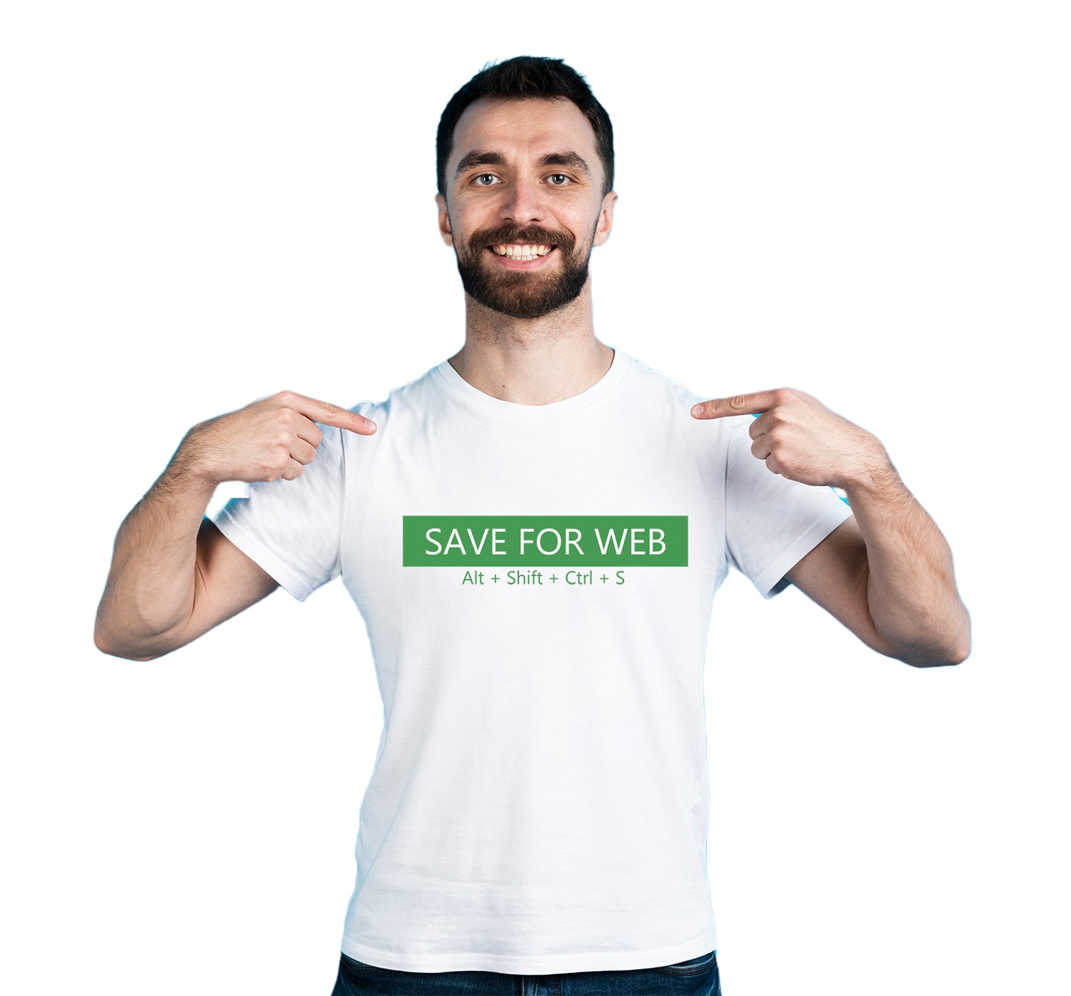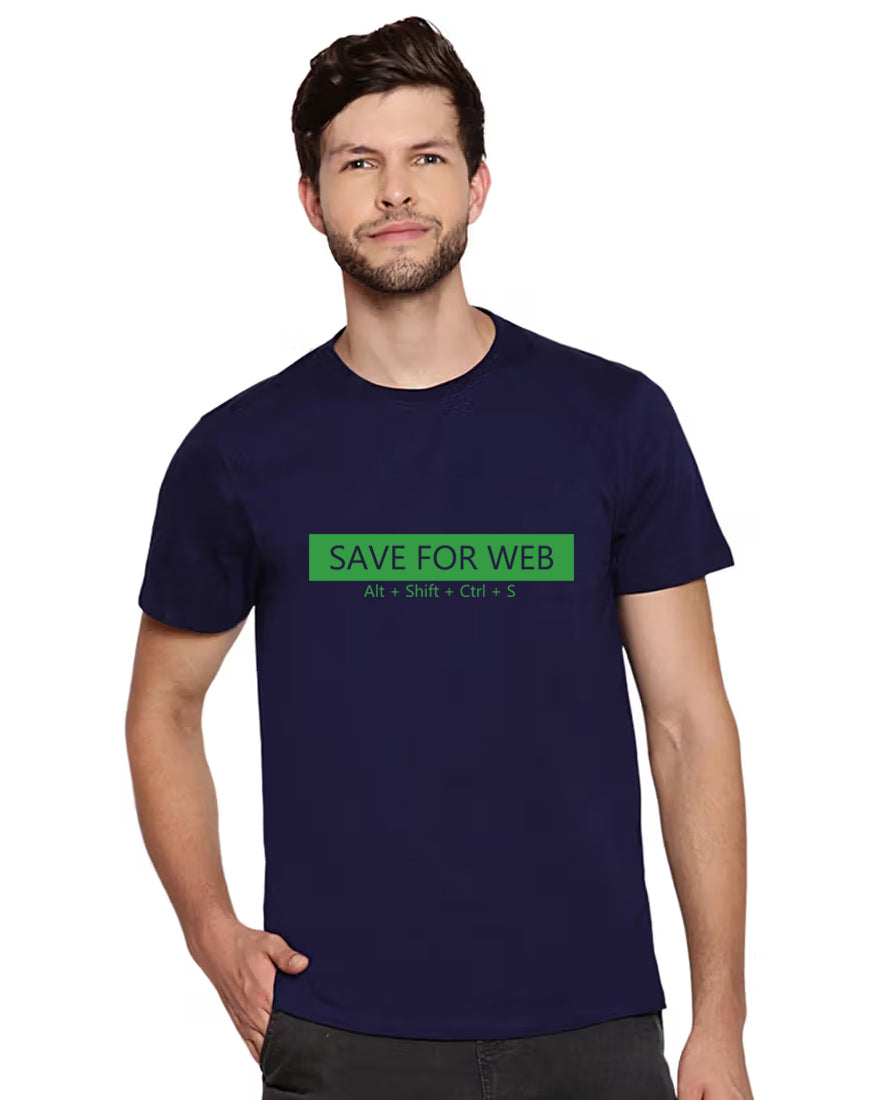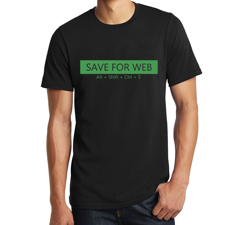 Elevate your style and pay homage to your Photoshop prowess with our premium quality cotton biowash typography t-shirt. This unique tee features the iconic shortcut "Save For Web Alt+Shift+Ctrl+S," a tribute to Photoshop users and fans who understand the magic of these keystrokes.“”