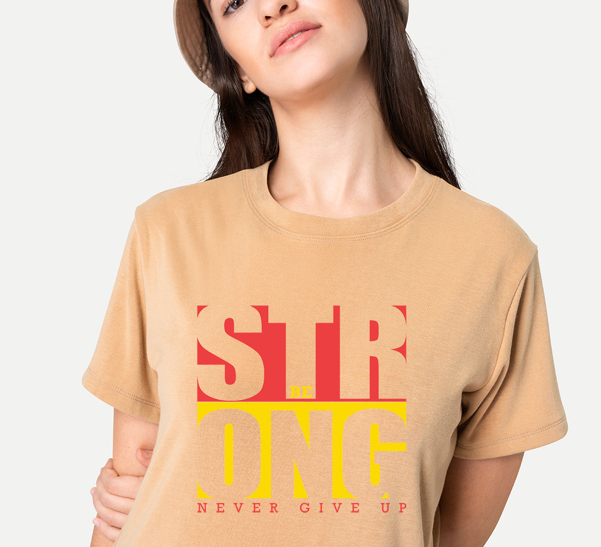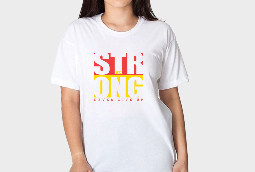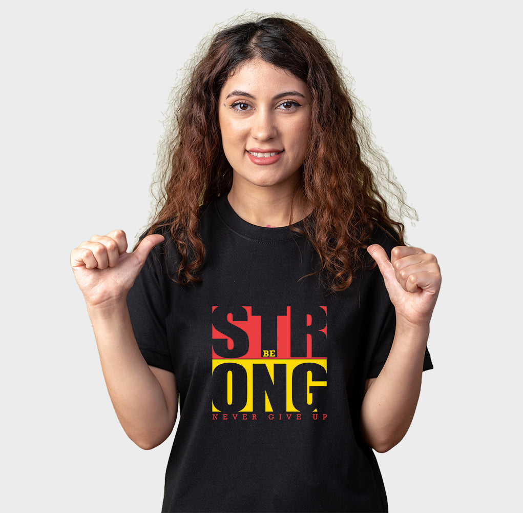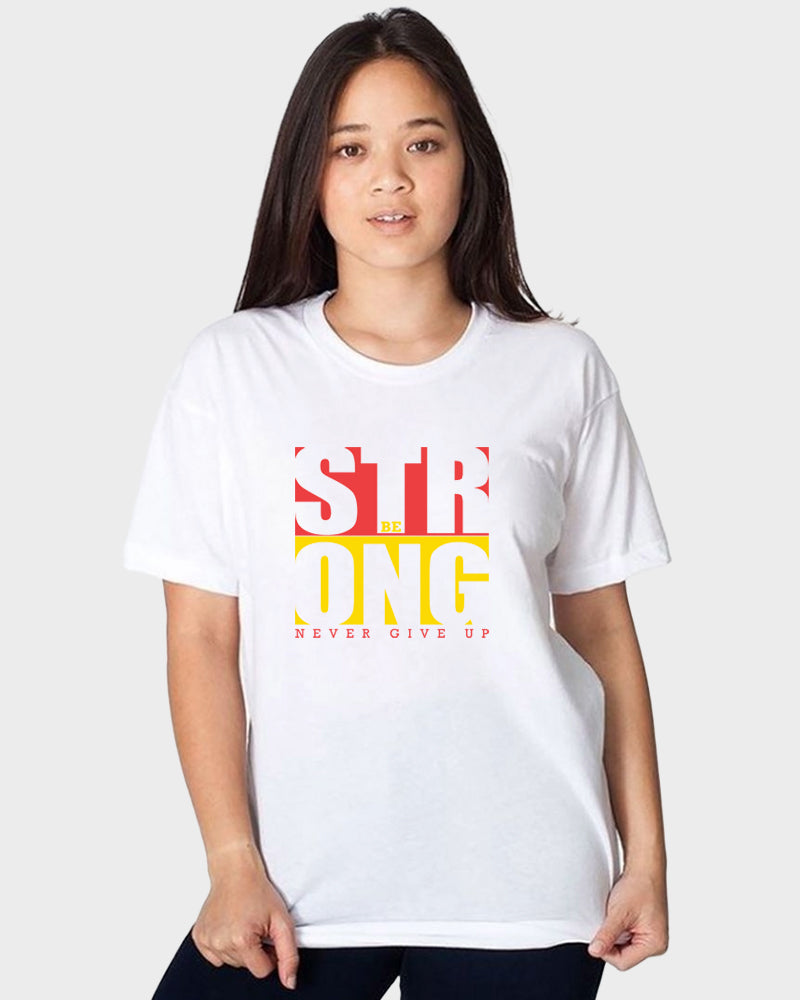 Introducing Women's "Be Strong Never Give Up" Typography Cotton T-Shirt - a powerful and inspiring addition to your wardrobe! Embrace the message of resilience and determination with this motivational tee.