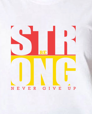 Available in various sizes and colors, this "Be Strong Never Give Up" Typography Cotton T-Shirt is suitable for individuals of all ages and genders. It also makes a thoughtful and uplifting gift for friends and family.