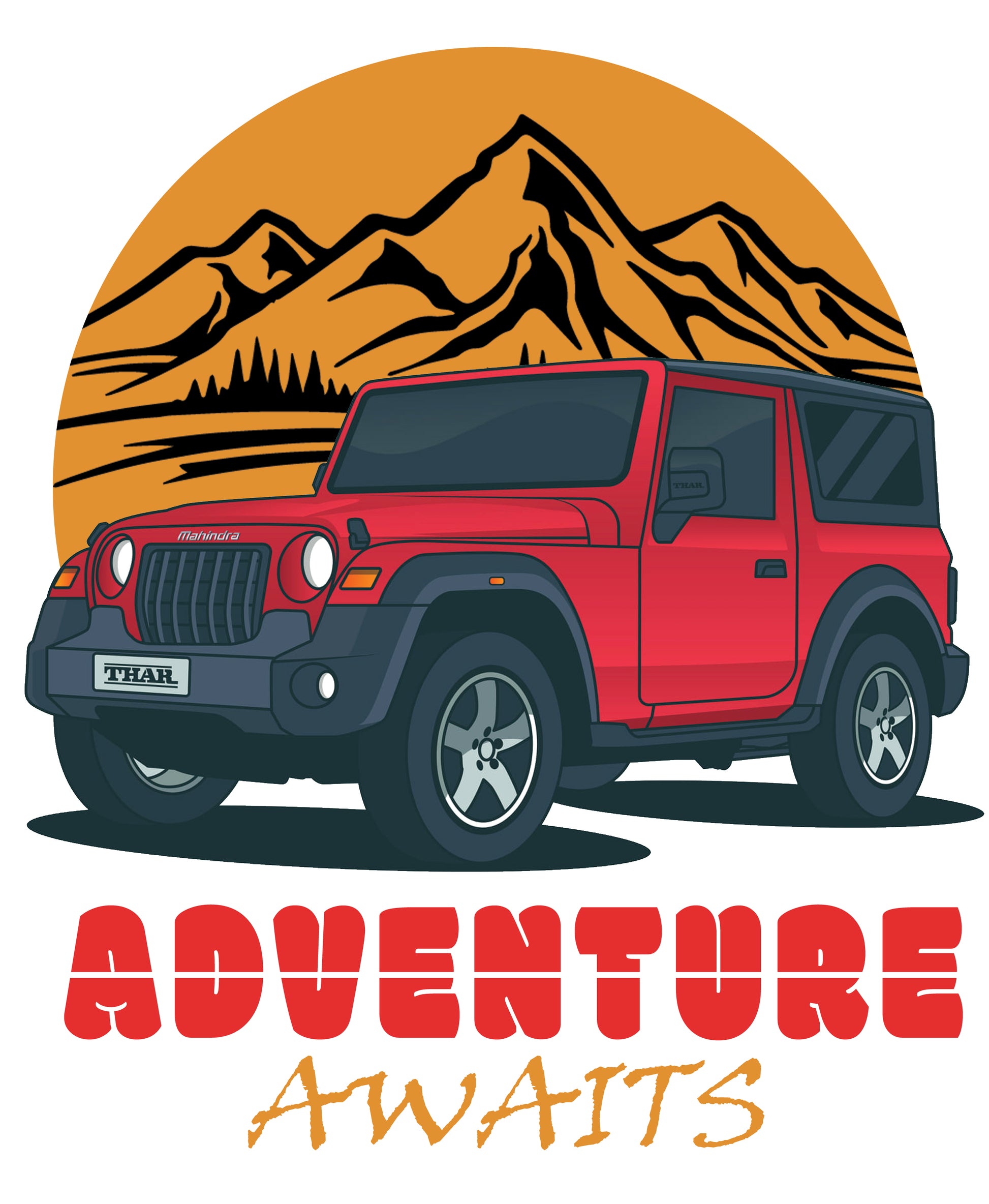 Mahindra Thar Tribute: Capture the spirit of exploration with the Mahindra Thar graphic, a symbol of rugged adventure that's sure to resonate with outdoor enthusiasts.