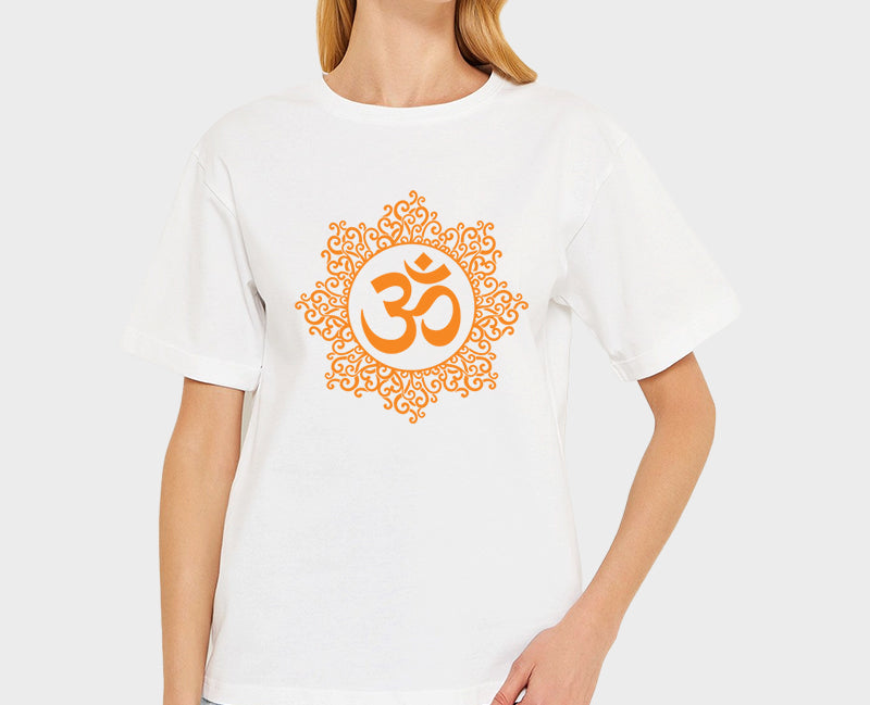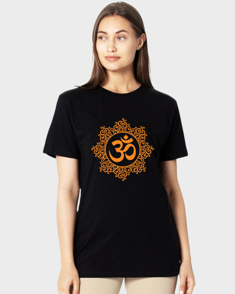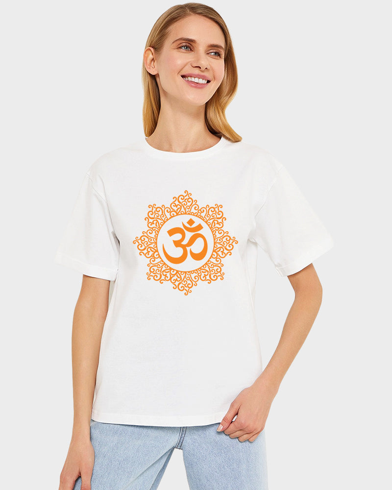 Women's Graphic Printed Premium Cotton Biowash T-Shirt - OM Graphic Spiritual Tee
