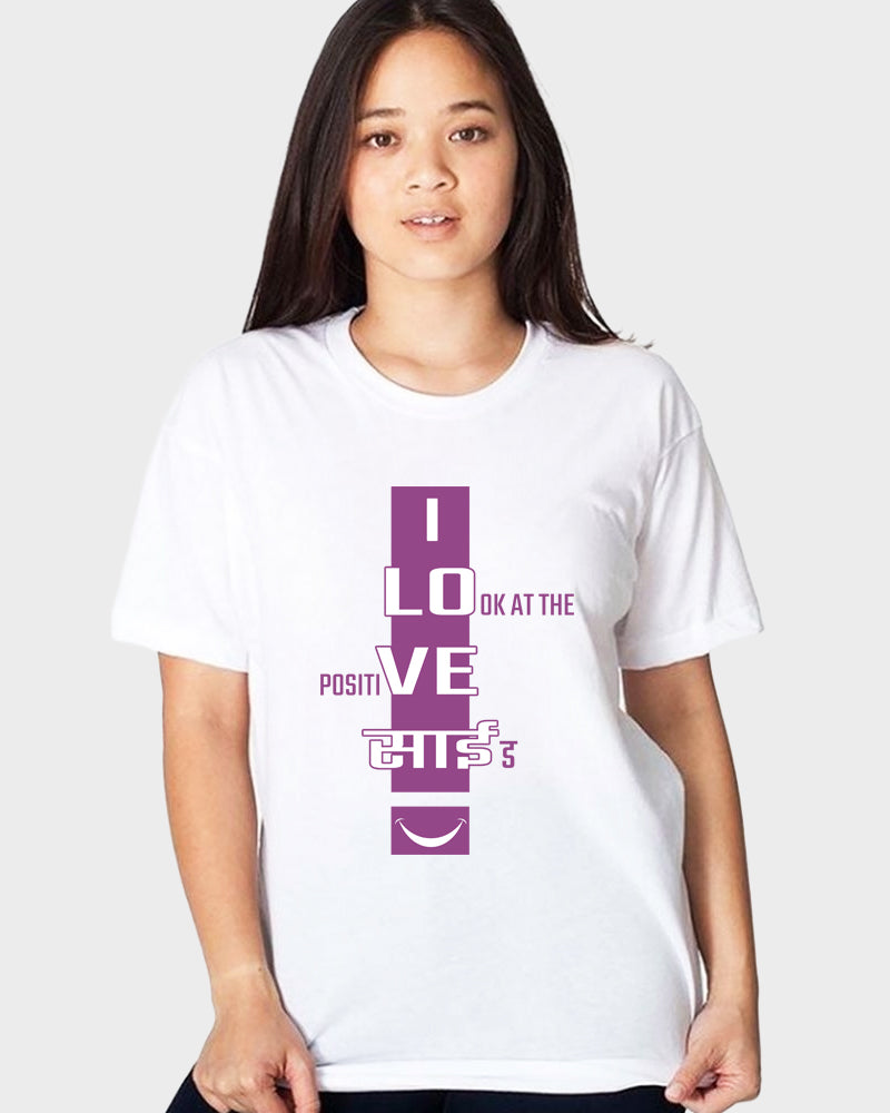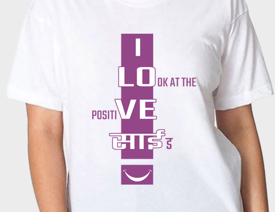 Celebrate positivity and spirituality with our Typography Printed Premium Unisex Cotton Biowash White T-Shirt, featuring the heartfelt "I Love Sai" typography and an uplifting "I Look at the Positive Side" message. Crafted for comfort and optimism, this shirt seamlessly combines premium quality with a message of love and positivity and showing your love and affection towards Sai Baba