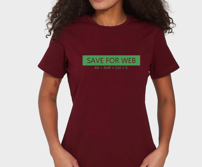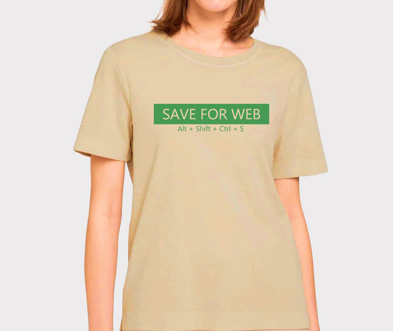 Elevate your style and pay homage to your Photoshop prowess with our premium quality cotton biowash typography t-shirt. This unique tee features the iconic shortcut "Save For Web Alt+Shift+Ctrl+S," a tribute to Photoshop users and fans who understand the magic of these keystrokes.